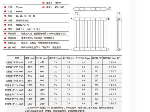 銅鋁復合75x75 防熏墻定向散熱器